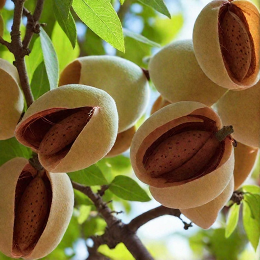 Ядро светло-коричневое, плотное, хрустящее. Вкус сладкий, с классическим миндальным ароматом. Дегустационная оценка 4.6 балла из 5. Содержание масла 55-58%.
