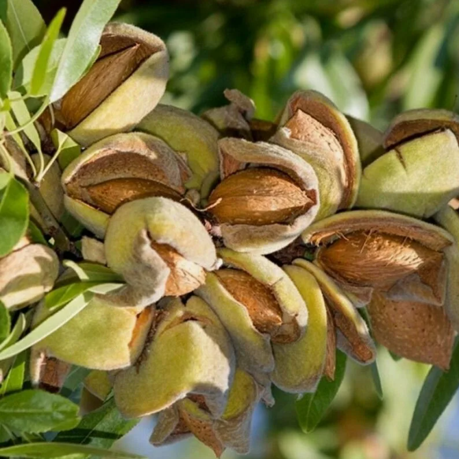 Миндаль Приморский — это сорт, который отличается высокой урожайностью. Его цветение происходит поздно, а орехи имеют сладковатый вкус и вес около 4 г.