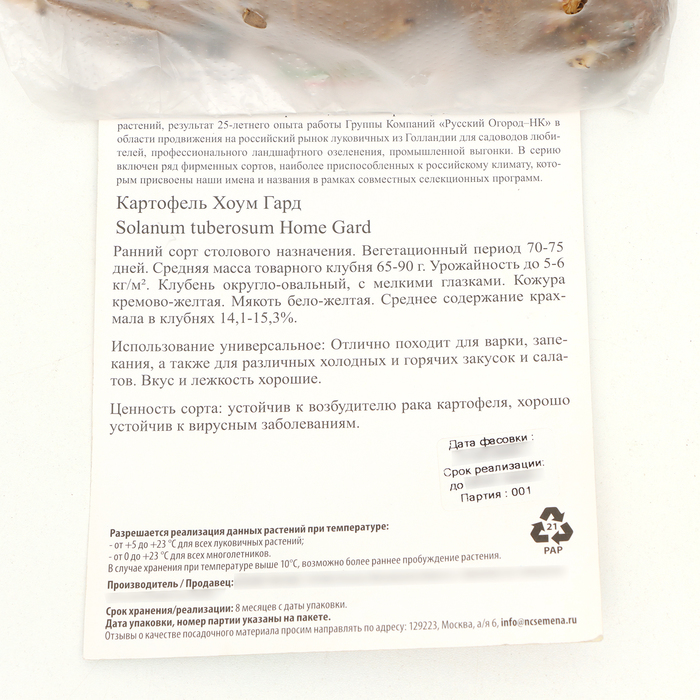 Семенной картофель «Хоум Гард», бело-жёлтая мякоть, ранний, Весна 2026