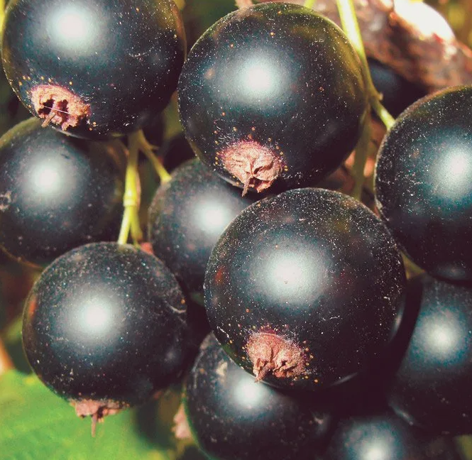 Среднерослые кусты имеют среднюю загущенность. Побеги серые и толстые, прямонаправленные, неопушенные, с длинными междоузлиями, меняют окраску на серо-желтый цвет ближе к верхушкам. Молодые светло-зеленые побеги текущего года покрыты блестящей кожицей и окрашены антоцианом. Крупная зеленая пятилопастная листва обладает блестящей морщинистой поверхностью, рассеченностью стандартной глубины и зубчиками по краям. Цветки белого цвета и довольно большого размера, собраны в свисающие кисти средней длины с 8–10 ягодами. Широкие чашелистники имеют средние размеры. Округлые черные ягоды обладают внушительной массой – от 1,8 до 2,5 граммов. Сочная освежающая кисло-сладкая мякоть покрыта тонкой кожицей.Скороплодный (3–4 год) сорт относится к раннеспелой категории — к сбору урожая приступают в конце июня – начале июля. конец июня- начало июля Гронисс, Ника 3-4 0,4-0,6 м