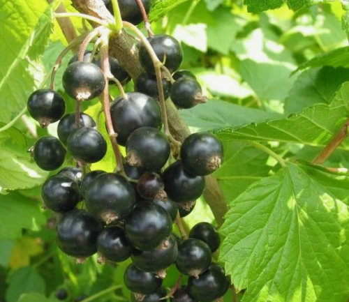 Куст высокий, довольно компактный, среднезагущенный. Растущие побеги средней толщины, зеленые, неопушенные. Лист пяти лопастный, крупный и средний, темно-зеленый с голубизной, со слабым блеском, морщинистый, мягкий, с небольшой складчатостью по границам средней и боковых жилок. Ягоды крупные (1,2-1,5 г), округлые и овальные, черные, слегка опушенные, со средним блеском, гладкие или редко с перетяжкой у отдельных ягод, отрыв сухой. Содержат большое количество семян средней величины. Чашечка средняя, сомкнутая, опадающая и полуопадающая. Ягоды универсального назначения. Сорт зимостойкий, стабильно урожайный (2,5 - 3,0 кг/куст), высоко самоплодный. середина июля-начало августа Шаровидная 2-3 0,4-0,6 м