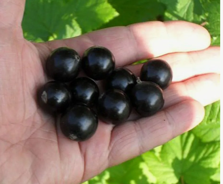 Сорт среднепозднего срока созревания. Куст среднерослый, высотой от 1,5 м. Ветки достаточно раскидистые, средней толщины со светло-коричневой кроной. Ягоды крупные, данный сорт смородины является рекордсменом по величине плодов. На одной плодоножке насчитывается до 10 ягод, разной величины. Плоды ядрено-черного цвета, круглой формы. Ягода с достаточно толстой кожицей и мелкими желто-коричневыми семечками внутри. Мякоть плотная, сочная, обладает сладко-кислым насыщенным вкусом и приятным ароматом. середина-конец июля Петербурженка, Орловский вальс, Гулливер 2-3 0,45-0,6 м