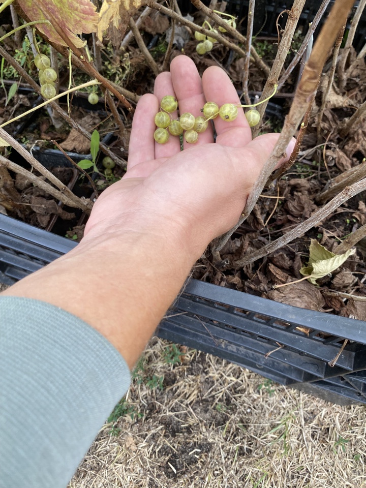 Смородина зеленая Изумрудное, Р9, Н20+см лист желтого цвета ,немного подгорел на солнце ,но есть ягоды, фото ягод сделано 20.07.24