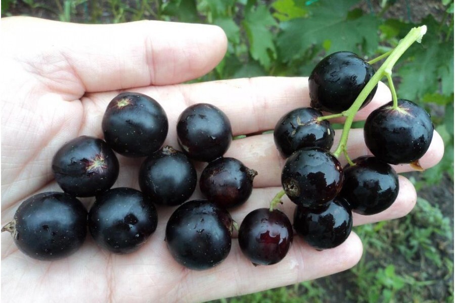Ягоды очень крупные до 5 гр, округлые, черные, блестящие. Вкус кисло сладкий, насыщенный, приятный. Кожица плотная, не растрескивается, с сухим отрывом. Сорт-рекордсмен по содержанию витамина С в плодах, зимостойкий, самоплодный, устойчив к болезням и почковому клещу.