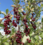 Среднерослое дерево, высотой 2,5 м, со среднеоблиственной кроной. Кора коричневого цвета, побеги пряморастущие, с сероватым налетом. Листья плоские, овальной формы, темно-зеленого цвета, без блеска. Соцветия простые, в виде зонтиков. Период цветения - первая половина мая. Ягоды среднего размера, темно-бордового, почти шоколадного оттенка. Мякоть плотная, сок багрового цвета, гармоничного, сладкого вкуса, с легкой кислинкой. Плоды созревают во второй декаде июля. В плодоношение вступает на 3-4 год после посадки. Лучше всего высаживать, на открытых, солнечных участках, с плодородными, легкими почвами, без застоя воды. Морозостойкость, устойчивость к болезням и вредителям - высокая. середина-конец июля Харитоновская, Тургеньевская (Тургеневка), Молодежная 3-4 1,5-1,8 м