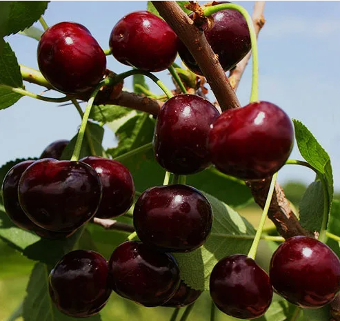Плоды крупные, по размерам – 20,9х19,8х17,9 мм, массой до 4,5 г, широкосердцевидной конфигурации, насыщенных тёмно-бордовых оттенков. Консистенция тёмно-красного окраса, немного уплотнённая, сочная. Кремовые косточки средних габаритов, весом 0,4 г, с хорошей степенью отделяемости от мякоти. Отрыв ягод полусухой.
