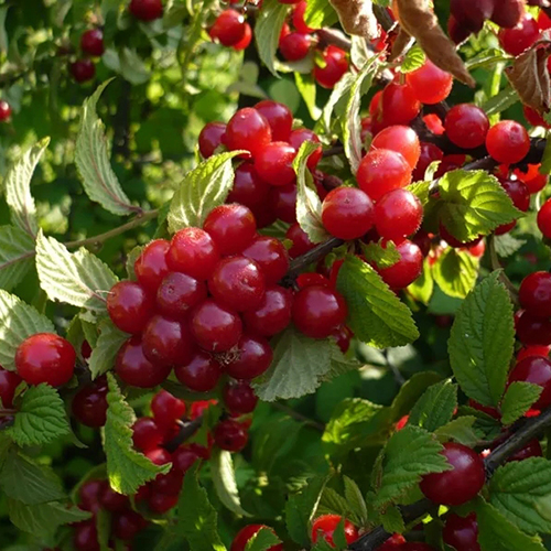 Вишня войлочная "Натали" – это сорт, который представляет собой сильнорослый куст высотой до 1.8 метров, с раскидистой кроной средней густоты. Листья темно-зеленые, удлиненные, с зазубренными краями и опушением. Цветет в середине мая средними по размеру, белыми, блюдцевидными цветками, собранными по 1-2 штуки в соцветия. Плоды крупные, темно-красные, массой до 4 грамм, созревают в середине июля. Мякоть красная, сочная, с гармоничным кисло-сладким вкусом. Сорт самобесплодный, для плодоношения требует опылителя. Период созревания: начало июля Опылители: Восторг, Восточная, Сказка, Океанская Вировская, Царевна . Вступает в плодоношение, лет: 2-3 . Высота саженца: 0,5-1 м