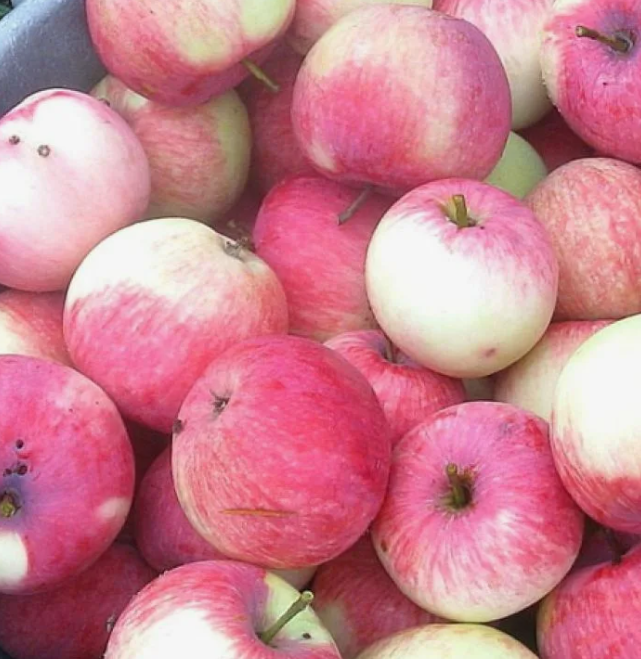 Среднерослое дерево, с округлой, слегка вытянутой кроной. Кора на ветвях окрашена в легкий оранжевый оттенок. Листья крупные, светло-зеленые, овальной формы, с неровными краями. Цветет бело-розовыми цветами, с насыщенным ароматом. Плоды крупного размера, массой 150 г, округлой, немного вытянутой формы, желто-зеленого цвета, с красным румянцем на солнечной стороне. Кожица тонкая, с легким восковым налетом. Мякоть белоснежная, сочная, кисло-сладкого вкуса, с конфетным ароматом. Созревание плодов происходит во второй половине августа. В плодоношение вступает на 3-4 год после посадки. Сорт универсального назначения. Морозостойкость, устойчивость к болезням и вредителям - высокая. середина-конец августа Белый налив, Коричное полосатое 3-4 1-1,5 м