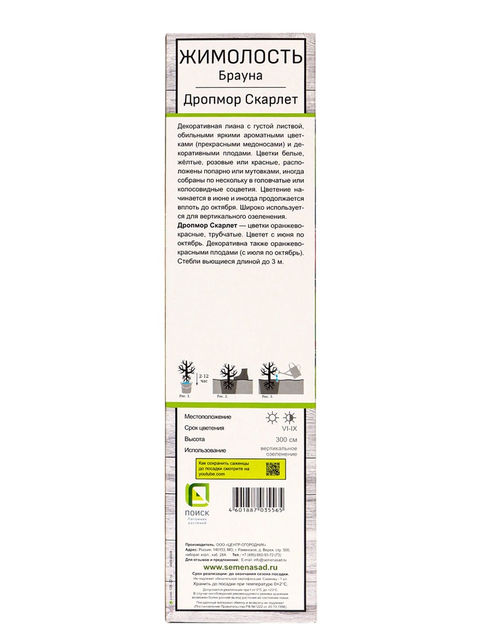 Жимолость Брауна Дропмор Скарлет, туба, 1 шт., Весна 2026