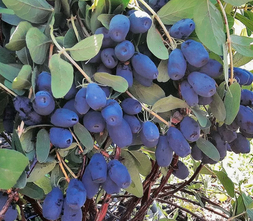 Жимолость "Индиго Джем" - это канадский сорт съедобной жимолости, известный своими крупными, сладкими ягодами с плотной мякотью и небольшим содержанием кислоты, без горечи. Сорт отличается высокой урожайностью, зимостойкостью и ранним вступлением в плодоношение. Ягоды крупные, удлиненно-овальные, фиолетово-синие, длиной до 3 см, весом до 3 грамм. Ягоды не осыпаются при созревании, что облегчает сбор урожая. конец июня - начало июля Аврора , Хоней Би 2-3 0,3-0,5 м