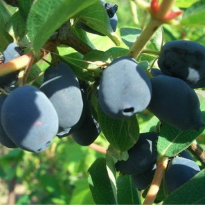 Раннеспелая жимолость относится к крупноплодным видам. На взрослом кустике ягоды вырастают массой более 1-1,3 г, но иногда вес доходит до 3,5 граммов. Форма у плодов удлиненная, кувшиновидная, с выраженной бугристостью поверхности. Характерной особенностью является одномерность ягод. Спелые плоды приобретают голубовато-синий окрас. Кожица у ягод плотная, но не грубая, покрыта восковым налетом.