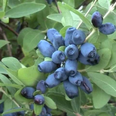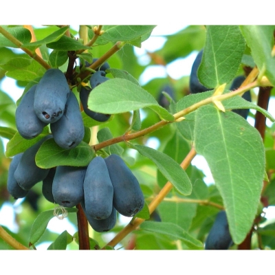 Плоды жимолости Волхова имеют универсальное назначение. Средний вес каждого 0.8 грамма. По форме они овальные слегка удлиненные, верхушка заострена. Практически не опадают. Окрас голубой с синевой.