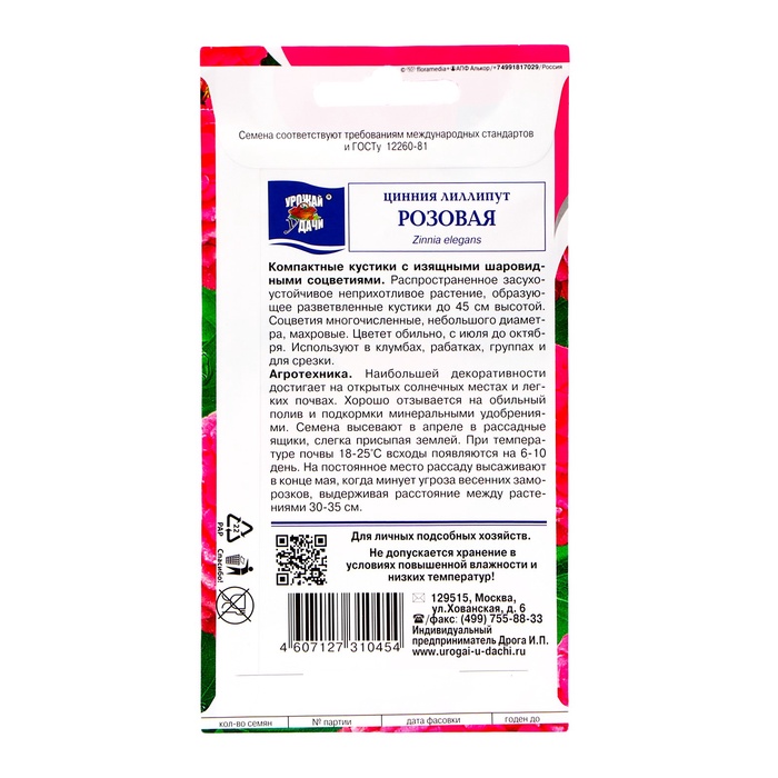Семена цветов Цинния "Лиллипут", Розовая, 0,3 г
