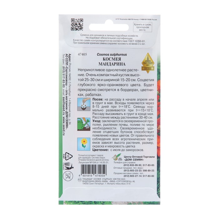 Семена цветов Космея "Мандарина", 10 шт