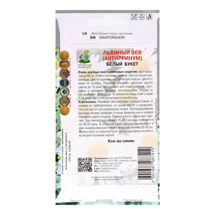 Семена цветов Львиный зев "Белый букет", 0,1гр.