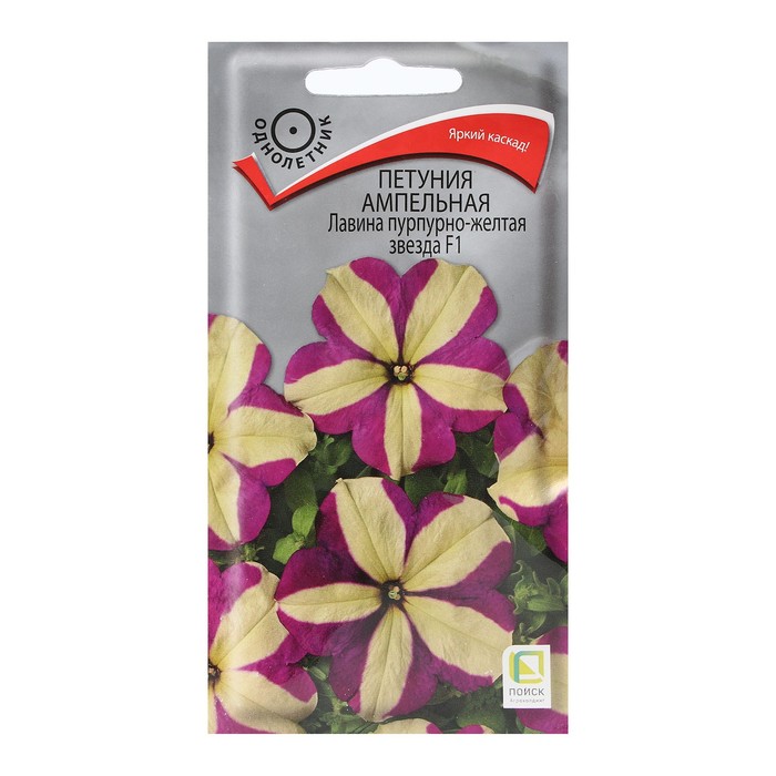 Семена цветов Петуния ампельная «Лавина Пурпурно-желтая Звезда», F1, 10 шт., «ПОИСК»