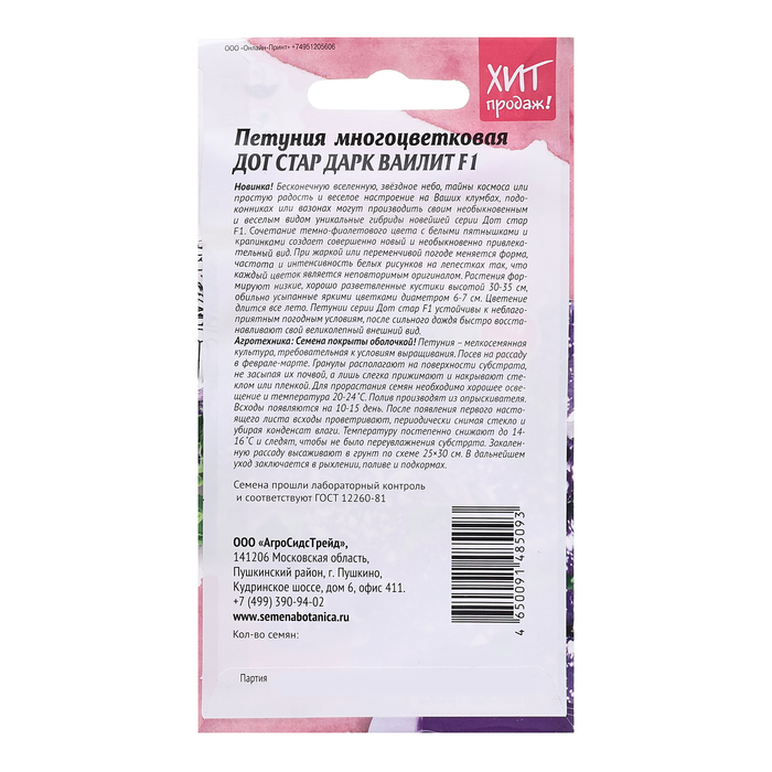 Семена цветов Петуния "Дот Стар Дарк ваилит, 10 шт