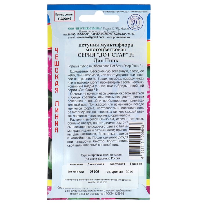 Семена цветов Петуния «Дот Стар Дип пинк» F1, 7 шт.