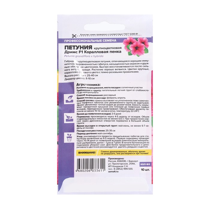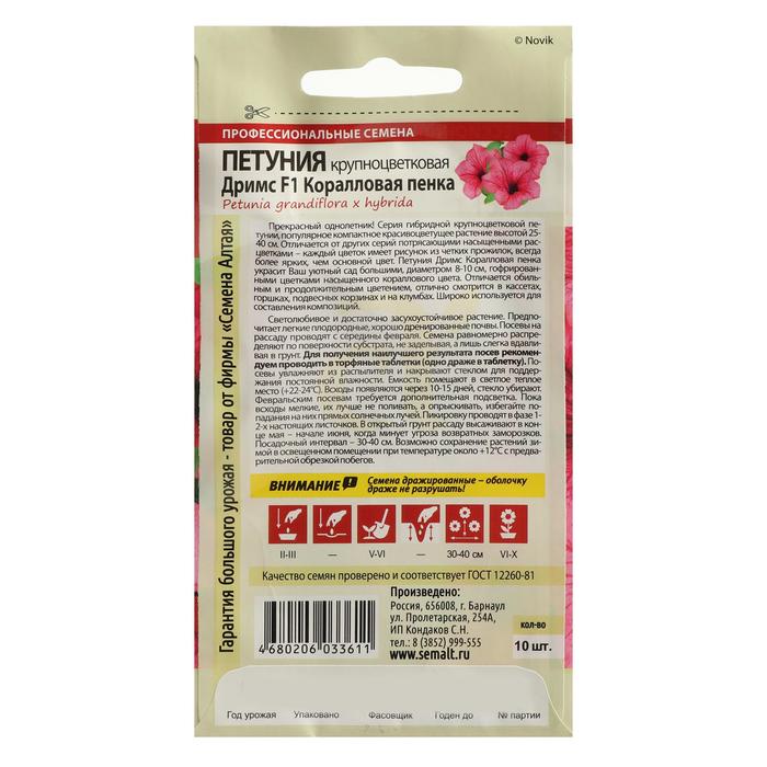 Семена цветов Петуния Дримс "Коралловая пенка", Сем. Алт, ц/п, 10 шт