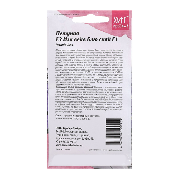 Семена цветов Петуния "Е3 Изи Вейв Блю скай F1", 5 шт