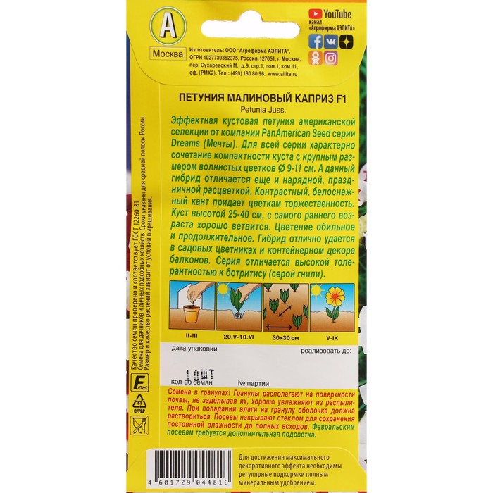 Семена Цветов Петуния «Малиновый каприз», F1, 7 шт., «Агрофирма АЭЛИТА»