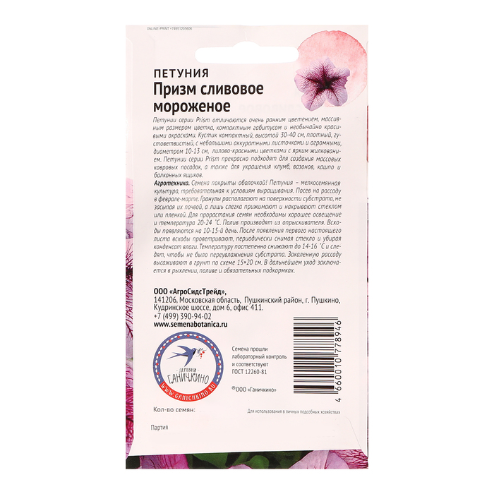 Семена цветов Петуния "Призм Сливовое мороженое F1", 10 шт