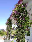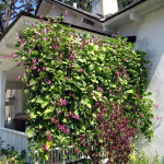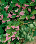 Наиболее теневыносливая и самая зимостойкая в своём роде быстрорастущая лиана с тонкими, гладкими, вьющимися или прямостоящими ветвями, взбирающаяся на высоту до 7 м. Декоративность ей придают довольно крупные морщинистые продолговато-яйцевидные листья, с изменяющейся окраской. В начале роста они бронзовые, затем зеленые с переходом к темно-зеленым, перед цветением (преимущественно на открытых местах) концы у большинства листьев становятся ярко-белыми, а после отцветания – розовыми, затем малиново-красными. В пору цветения необычайный аромат струится возле посадок этого вида. Продолжительность цветения до 20 дней. В осенний период листья окрашиваются в розовые, желтые, светло-желтые или фиолетово-красные тона. Используют в качестве плодового и декоративного растения для вертикального озеленения, высаживая около дома или ограды.