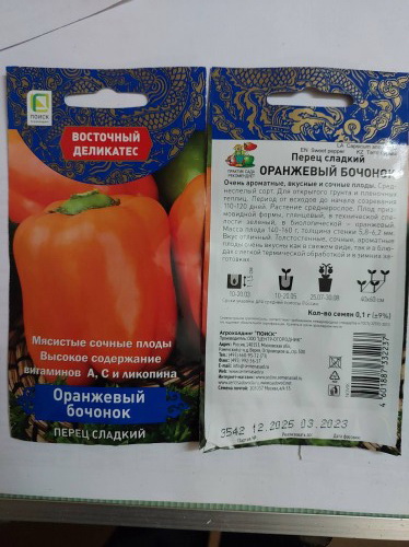 Очень ароматные, вкусные и сочные плоды. Среднеспелый сорт. Для открытого грунта и пленочных теплиц. Период от всходов до начала созревания 110-120 дней. Растение среднерослое. Плод призмовидной формы, глянцевый, в технической спелости зеленый, в биологической - оранжевый. Масса плода 140-160 г, толщина стенки 5,8-6,2 мм. Вкус отличный. Толстостенные, сочные, ароматные плоды очень вкусны как в свежем виде, так и в блюдах с легкой термической обработкой и в зимних заготовках.
