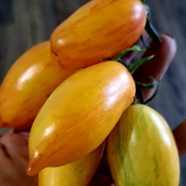 Раннеспелый сорт. Растение среднерослое, компактное, плоды пониклые, конусовидной формы массой 120-130 г. Толщина стенки 2-4 мм. Окраска незрелых плодов зеленая, зрелых — оранжевая. Мякоть сладкая, вкусная, ароматная.