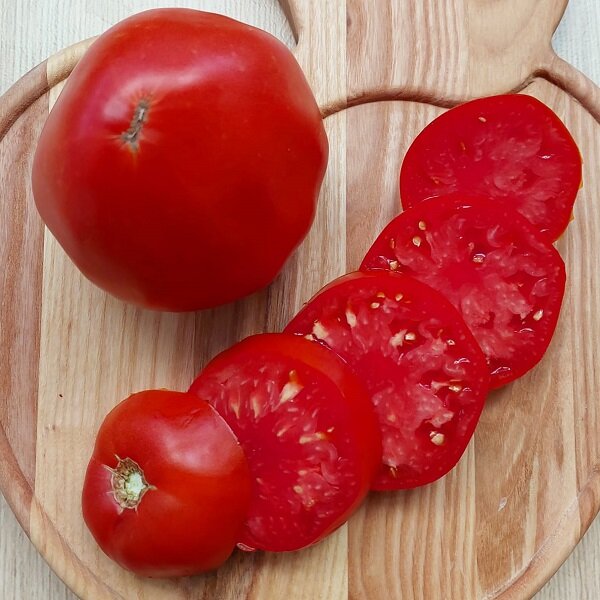 Очень вкусный тяжеловес! Со сладостью. Среднеспелый. Высокорослый. Идеален для салатов, бутербродов, кетчупов…