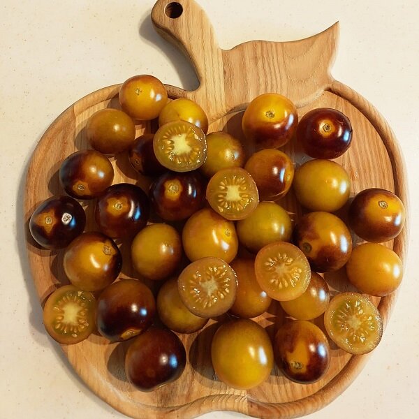 Экзотический, среднеспелый, высокорослый, урожайный сорт томатов черри для теплиц и открытого грунта. Куст мощный, индетерминантного типа, высотой до 1, 8 метра. Требуется подвязка к опоре и пасынкование. Наилучшие результаты получились при формировании растения в 2 стебля. Плоды округлые, гладкие, в стадии технической спелости фиолетовые, в биологической — желто-оранжевые с фиолетовым напылением. Средний вес 20-25 грамм. Вкус помидорок сладкий, с очень приятным насыщенным томатным ароматом. Сорт обладает продолжительным плодоношением, вяжет плоды до заморозков. К тому же устойчив к основным болезням томатов. Прекрасно подходит для цельноплодного консервирования.