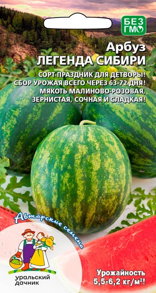 Получен путем скрещивания сортов Мелитопольский 143 х Необычайный с дальнейшим многолетним отбором. Сладкая зернистая мякоть с сильным арбузным ароматом, раннеспелость и крупноплодность — важные качества для любимой осенней ягоды. Растение мощное, с длинной главной плетью. Удлиненно-шаровидные плоды массой 4,6-6,1 кг созревают через 75-85 дней после появления всходов. Мякоть нежная, сочная, вкусная, насыщенного малинового цвета.