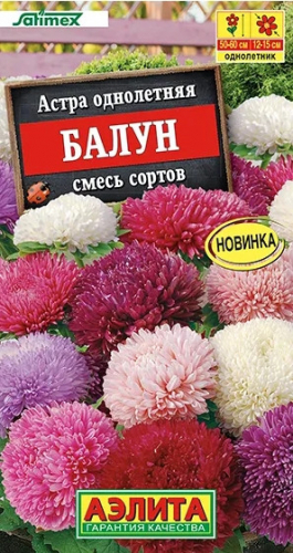 Смесь ярких «воздушных шариков». Селекционером и владельцем сорта является компания Satimex QUEDLINBURG GmbH. По степени махровости астра Балун превосходит все махровые астры! Шаровидные соцветия диаметром 12-15 см, устойчивы к дождю и ветру. На одном крепком пирамидальном кусте, высотой 50-60 см, формируется 6-8 штукпрочных побегов. Растение украсит клумбы в саду. Прекрасно подходит для срезки.Букет стоит в вазе с водой до 2 недель!