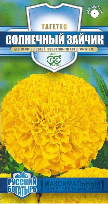 Однолетнее растение из семейства Сложноцветные. Стебли прямостоячие высотой 50-70 см, сильноветвистые от основания. Соцветия-корзинки 10-12 см в диаметре. В открытый грунт можно высевать в конце мая-начале июня. Всходы появляются на 5-10 день. Почву желательно накрыть нетканым материалом (акрил, лутрасил). В этом случае сеять можно на неделю-полторы раньше обычных сроков и тем самым ускорить цветение. На рассаду сеют в начале апреля. Цветение начнется в июне. Бархатцы, высаженные рядом с огородными культурами, уменьшают их поражение грибковыми заболеваниями, особенно фузариозом, защищают от некоторых видов нематод. Бархатцы используют во всех видах цветников. Они хорошо растут в горшках, вазонах, балконных ящиках, в сочетании с примулами и цинерариями. Осенью цветущие растения можно перенести в комнату, где они прекрасно растут в течение всей зимы.
