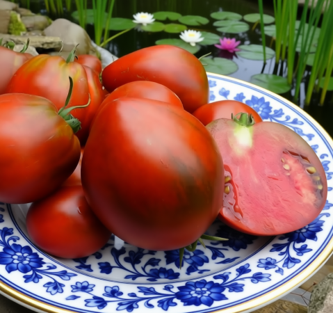 Окраска — насыщенный красно-коричневый (у плечиков возможен лёгкий зелёный оттенок). Масса плодов — 170–400 г, чаще 250–330 г. Мякоть плотная, мясистая, вкус сладкий, богатый, исключительный. Сорт коллекционный, подходит для выращивания в теплице и открытом грунте
