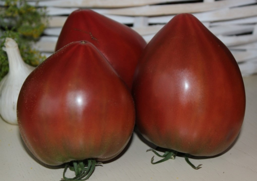 Черная пирамида-относится к категории скороспелых сортов. Входит в группу среднерослых детерминантов. Особенности сорта:высота побегов — 1–1,2 м;полураскидистые крепкие кусты;детерминантный рост;умеренная облиственность и ветвистость.Крупные помидоры ценятся за товарные и вкусовые качества. Описание плодов:средняя масса — 300–400 г, крупные экземпляры весят 500 г;форма — удлиненно-сердцевидная;окрашивание — темное;мякоть — мясистая, умеренно-сочная;семенных камер и семян немного;излом — сахаристый;вкус — с приятной сладостью.