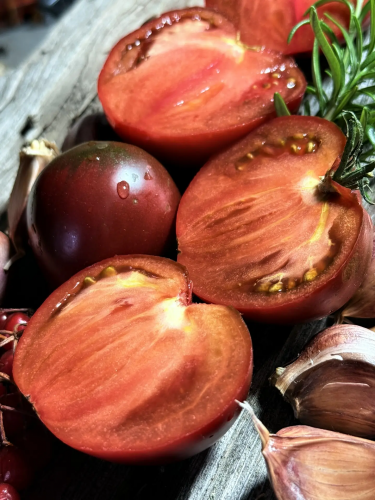 Индетерминантный, высокорослый (1,8-2 м), среднеспелый. Рекомендуется формировать в 2 стебля с обязательным пасынкованием и подвязкой к опоре. Плоды фиолетовые сердца 200-300 грамм мясистые, ароматные, великолепного сбалансированного вкуса с присутствием пряных ноток !