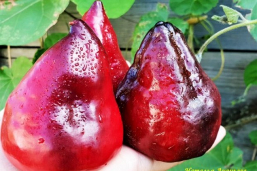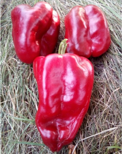 Ранний, сладкий, насыщенный вкус, плоды с антоцианом, сначала совсем чёрные, потом все оттенки фиолетового, в полной спелости темно-вишневые. Период съемной спелости ранний - 107-108 суток . Кусты 75-85 см. Сами перцы массивные, конусовидной формы, средний вес - 125 гр. толщина стенки 8мм. Благодаря такой массе с 1м² легко допустимо снять около 9,0 кг. Используют в свежем виде, можно готовить на гриле, фаршировать, мариновать, использовать для различных видов консервации.