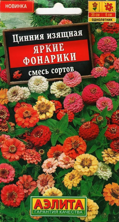 Обильноцветущая смесь карликовых цинний. Формирует плотные шаровидные кустики высотой 25-35 см.