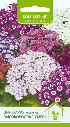 Цветы Цинерария цветущ.кровавая Высокорослая смесь 0,01 г ц/п Поиск (комн.)