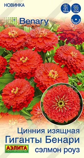 Цветы Цинния Гиганты Бенари Сэлмон роуз 7 шт ц/п Аэлита (однол.)