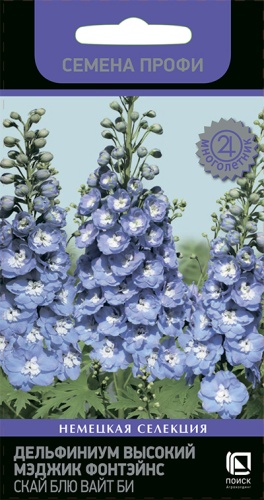 Цветы Дельфиниум Мэджик Фонтейнс Скай Блю Вайт Би 10 шт ц/п Поиск (мног.)