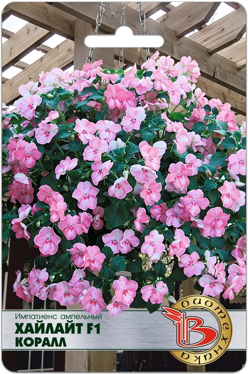 Роскошная форма импатиенса (бальзамина), используемого для подвесных корзин и балконных ящиков Профессиональный импатиенс для подвесных корзин, выращиваемый из семян.Ранее гибриды такого высокого уровня были доступны только из черенков! Для серии Хайлайт характерны короткие междоузлия, что создает очень плотный куст. На фоне темных листьев цветки смотрятся еще ярче.Посев:февраль – март, семена слегка придавливаются в грунт или присыпаются слоем грунта не более 2-3 мм.Прорастание: 10-15 дней при 20-25?С.Пикировка: 2-3 пар настоящих листьев в горшки диаметром 6-8 см, после этого объёма растением перевалка в горшки объёмом 0,6-0,8 литра.В процессе выращивания рассады, начиная с момента посева семян, необходима досветка 14-16 часов.Высадка на постоянное место: первая декада июня.Начало цветения: на 15-16 неделе после посева семян.Рекомендуется выращивать в местах с рассеянным светом, для одного взрослого растения потребуется от 10 литров грунта.Подкормка комплексным минеральным удобрением с микроэлементами.
