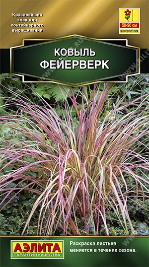 Эффектный многолетний злак 50-90 см высотой. Впечатляет раскраской листьев, которая, как у хамелеона, меняется в течение сезона. Темно-зеленые в мае-июне, кожистые листья к августу окрашиваются в золотой, розовый, оранжевый, красный и коричневый тона. Ажурные зеленовато-пурпурные колоски с июня по сентябрь образуют над кустом легкий живописный «туман».Ковыль ФЕЙЕРВЕРК создан для роли солиста, настолько он красив и необычен. Он идеально подходит для объемных садовых вазонов, центра приподнятой клумбы, альпийской горки. Одиночное растение или небольшие группы хорошо смотрятся на фоне газона. Соцветия используются в срезке для живых и сухих цветочных композиций.