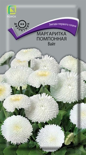 Цветы Маргаритка Помпонная Вайт 0,05 г ц/п Поиск (двул.)