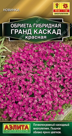 Серия красивоцветущей* каскадной обриеты. Это прекрасная почвопокровная многолетняя культура для создания бордюров, украшения каменистых горок и подпорных стенок в саду. Растения высотой около 10 см, диаметром до 40-50 см, зимостойкие. Быстро восстанавливают декоративный облик весной после схода снега и зацветают в мае пышным ковром ярких цветков  ? 1 см. Обриета незаменима на каждом участке, потому что пик ее цветения приходится на межсезонье (конец весны), когда отцвели первоцветы, а большинство однолетников и многолетников только формируют бутоны.