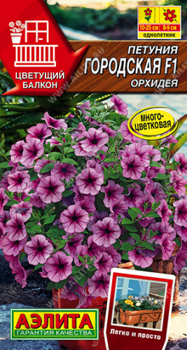 Крупноцветковая, генетически компактная петуния иностранной селекции. Растения компактные и очень аккуратные, высотой 20-25 см и шириной 35-40 см, в течение всего сезона покрыты красивыми цветами диаметром 8-10 см! Цветение обильное и продолжительное. Гибрид прекрасно растет в балконных ящиках, горшках и кашпо. При выращивании в горшках диаметром 11 см высаживают не более 1 растения.