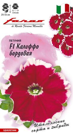 Многоцветковые петунии  F1 Калиффо — итальянские красавицы для создания уютного уголка солнечного средиземноморья в саду и на балконе. Аккуратные «точеные» кустики  густо покрывают  нарядные цветки диаметром 5 см. Глубину оттенка подчеркивает бархатистая текстура цветков, а яркий белый ободок по краю придает контрастности.