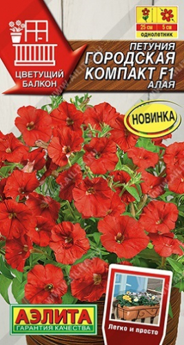 Цветы Петуния компакт Городская F1 Алая 7 шт ц/п Аэлита