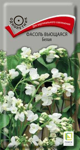 Великолепное ампельное растение! Стебли тонкие вьющиеся, поднимаются на высоту 2,5 м. Листья многочисленные, темно-зеленые. Цветы белые в пазушных кистях на длинных цветоносах. Цветет обильно с июля до сентября. Декоративную ценность представляют и плоды растения - крупные, шероховатые бобы. Используют для вертикального озеленения и устройства пирамид на газонах.